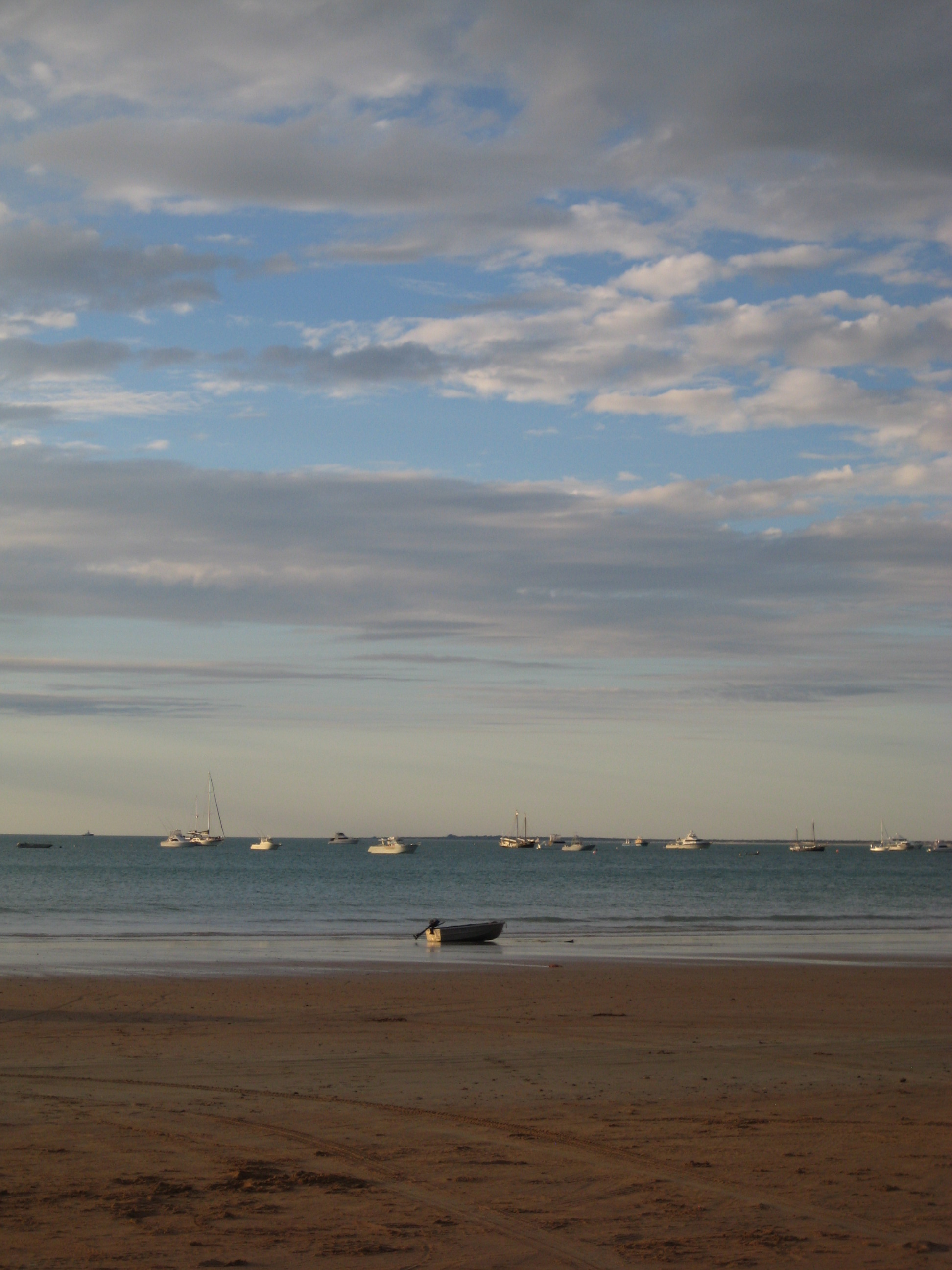 I guess I’m the lucky one – still at anchor of Broome’s Cable Beach with warm sun and light breezes. One of the interesting things about this anchorage is the conflict between wind and current. The boat often doesn’t know which way to point as the changing tides create fast flowing currents through the bay (at Gantheaume Point) and the wind blows across it. Hmm.