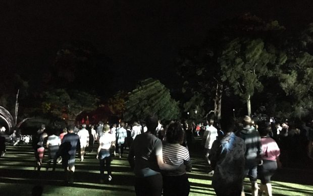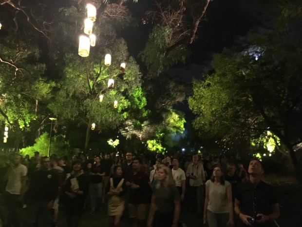 And so the tide of people turn away from the extinctions and the hope, into the darkness of Kings Park. In the dark we meet others we know, friends among the tens of thousands of strangers that walk here this night. All around us are those who have walked with us, on Nyoongar Boodja, through this journey of sound and light.