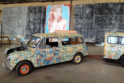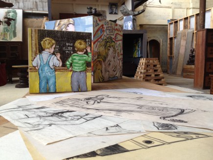 There are the four portraits of young women who are part of the punk scene, by Liam White in collaboration with Ada Conroy. The portraits are striking for the fact that they give us nothing of the faces or expressions of the women, but instead give each of them a voice. The voice is captured in the chunk of typewritten text beneath the portraits and inside the frames. There are mistakes in the text in places, thanks to the fallibility of human fingers on typewriter keys. It is appropriate, for surely in telling their story, no-one says it perfectly the first time round. There are always corrections, revisions, maybe some backpedalling.