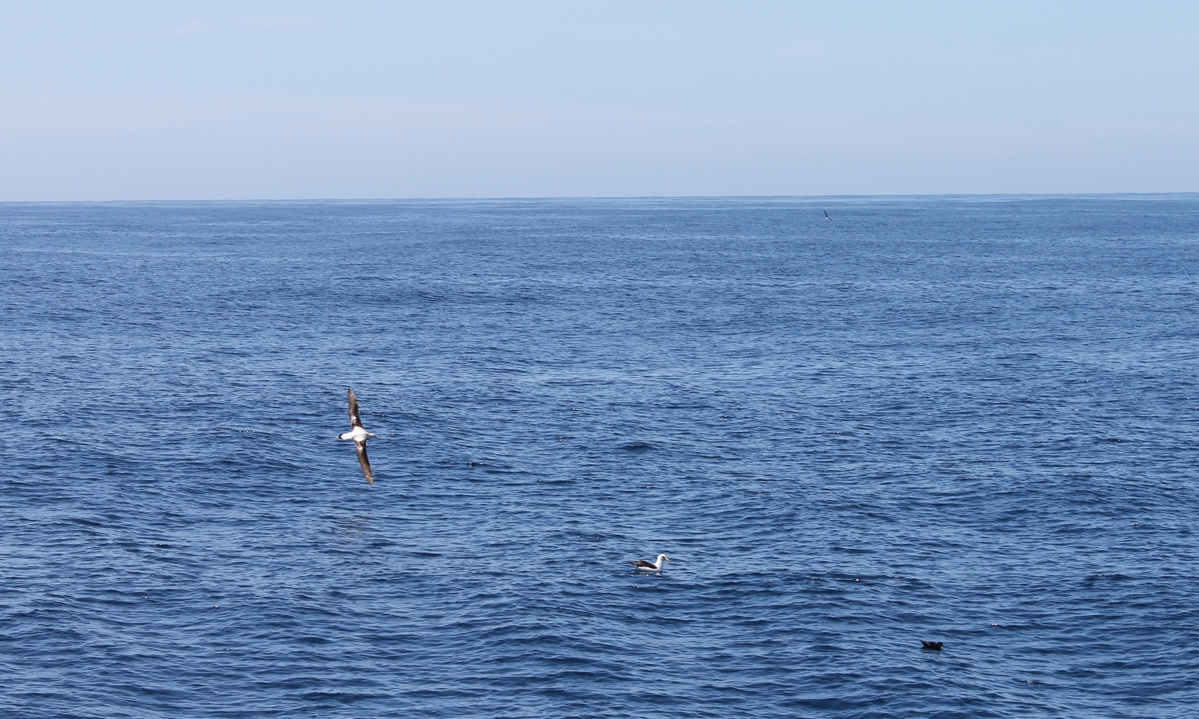 One afternoon after the birds have been absent for a while I look across to the eastern horizon and see that one has returned. This bird is different to the black-browed albatross. Languidly soaring across the waves, it banks and I see its enormous wingspan, white back and speckled pattern leading into dark wings.