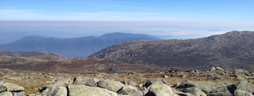 At the summit, it was noisy with the caws of the Little Ravens who gather on the rocky peaks to feed on Bogong moths. To the west, the Australian Alps lay in a smoky purple haze, layer upon layer of ridge fading into the distance.